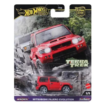 Explore new frontiers with the Hot Wheels Premium Car Culture Terra Trek Mitsubishi Pajero Evolution 1:64 Diecast Car! With its rugged design and precision detailing, this car is ready to conquer any terrain. Fuel your imagination and get ready for endless off-roading adventures.