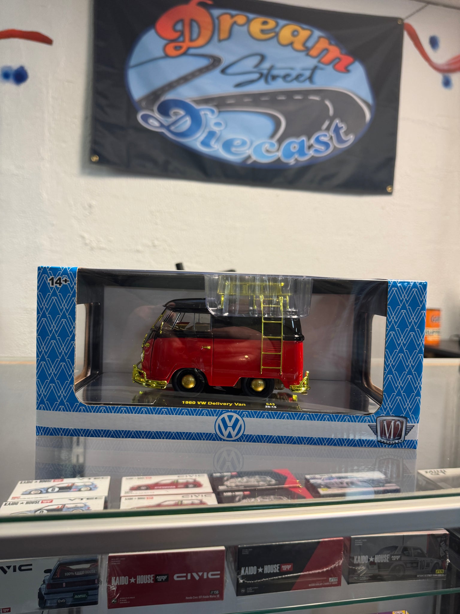 M2 Machines brings this ultra-rare 1960 VW Delivery Van to life in stunning 1/24 scale detail. This Walmart Exclusive CHASE GOLD variant (S43) is limited to just 750 units worldwide, making it a standout addition to any serious diecast collection. Featuring authentic period-correct styling, precision engineering, and the coveted gold finish that distinguishes chase variants, this model captures the iconic charm of vintage VW commercial vehicles. A must-have for M2 enthusiasts and vintage automotive collectors alike.