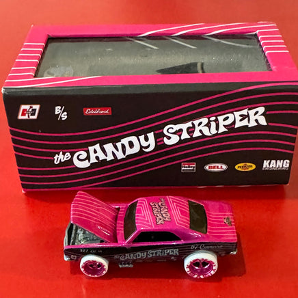This Dreyla custom transforms a Hot Wheels 1967 Camaro casting into a show-stopping work of art. Featuring a meticulously applied candy stripe paint scheme that showcases Dreyla's signature attention to detail, this custom captures the spirit of classic American muscle car culture with a bold, eye-catching design. The candy finish creates depth and brilliance that shifts in the light, while the precision striping demonstrates the level of craftsmanship that has made Dreyla one of the most respected names in the custom diecast community. Every detail from the paint application to the wheel selection reflects the dedication to excellence that defines premium custom diecasts.
