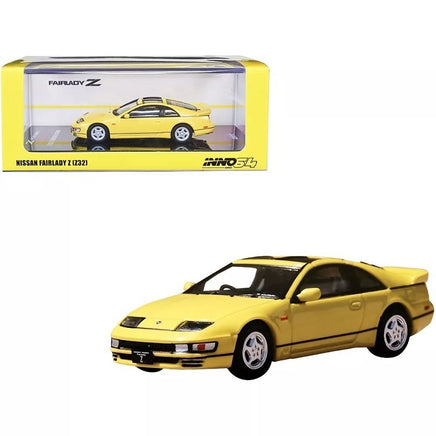 The INNO64 Fairlady Z32 Yellow is a 1/64 scale die-cast car crafted with attention to detail. Featuring realistic features such as finely replicated details, opening doors, and real rubber tires, this model car is perfect for any collector.