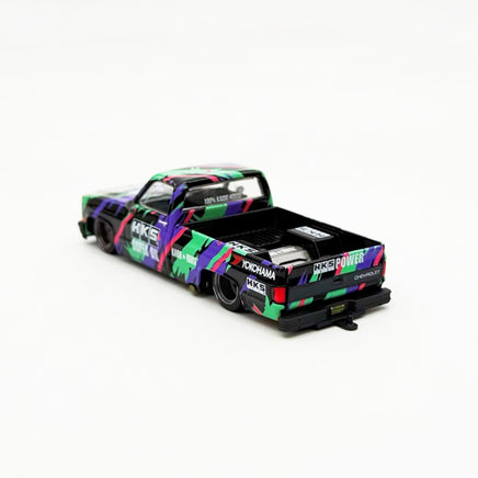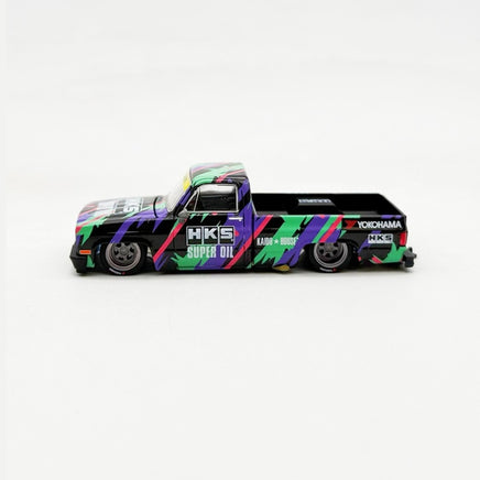 The Kaido House * Mini GT #174 Chevrolet Silverado Kaido HKS V1 is a finely detailed diecast model that captures the aggressive styling and iconic modifications of the legendary Kaido House tuning culture. Expertly crafted to reflect the signature widebody kit, custom HKS-inspired accents, and a striking stance, this 1:64 scale collectible offers a precise replica of the Chevrolet Silverado with authentic paintwork and intricate finishes. Ideal for collectors and enthusiasts seeking a premium, expertly scaled representation of a celebrated custom truck.