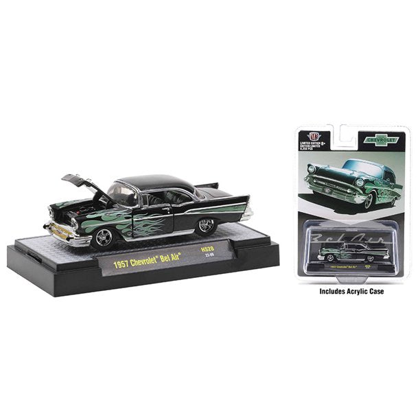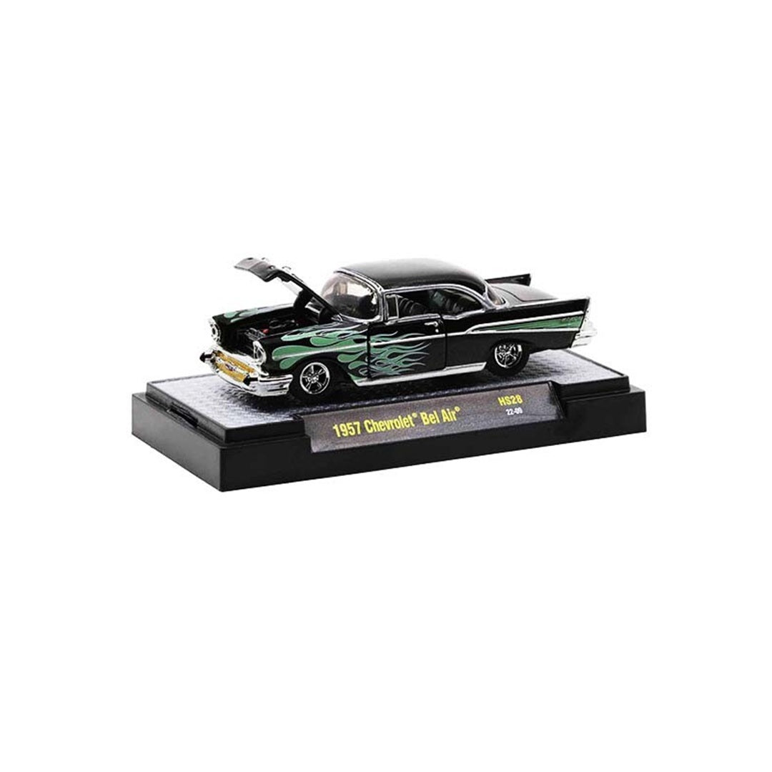 M2 Machines 1957 Chevrolet Bel Air - Black with Green Flames