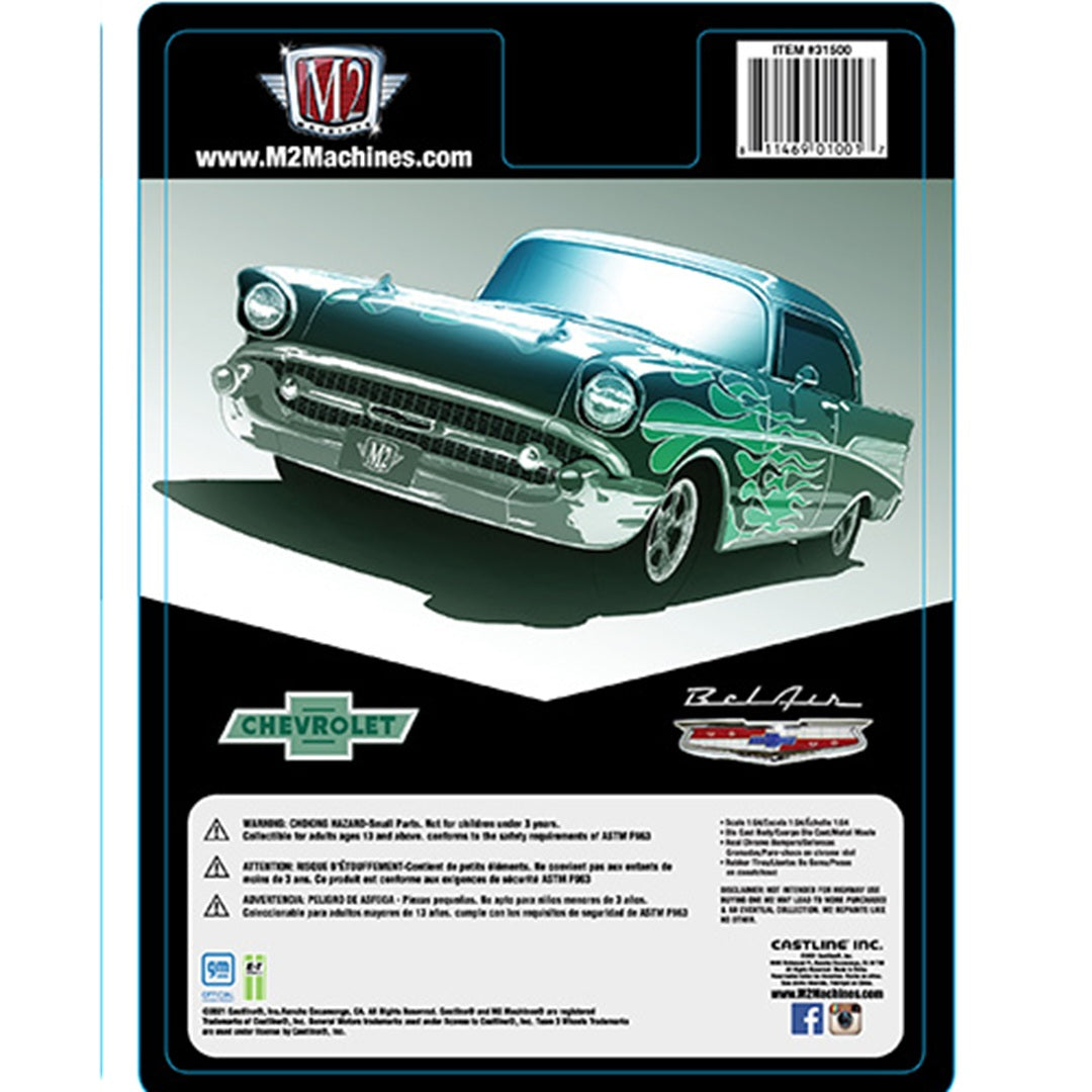 M2 Machines releases featuring the '57 Bel Air are highly sought after by collectors due to the model's iconic status and M2's superior craftsmanship. Custom flame liveries add unique appeal and collectibility, making this a smart addition to any serious diecast collection.