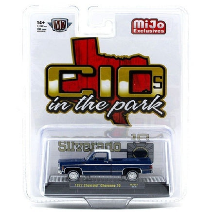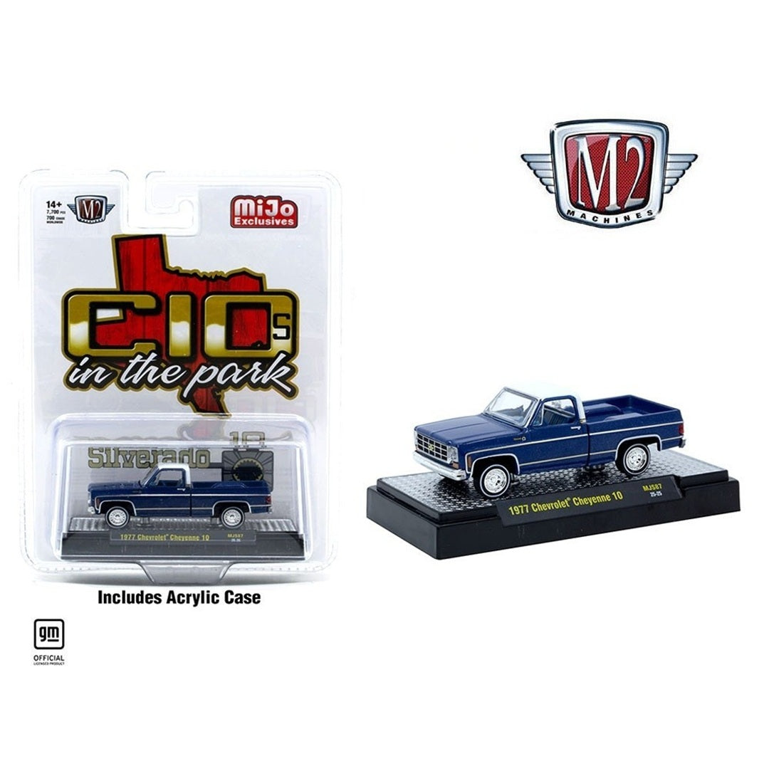 The M2 Machines 1977 Chevrolet Cheyenne 10 in blue is a finely detailed limited edition collectible from the C10s In The Park MiJo Exclusives series. This diecast model captures the iconic styling of the classic Chevrolet Cheyenne 10 pickup with precise craftsmanship, making it a must-have for serious collectors and enthusiasts of vintage trucks. Its limited production run adds significant value and exclusivity to any collection.