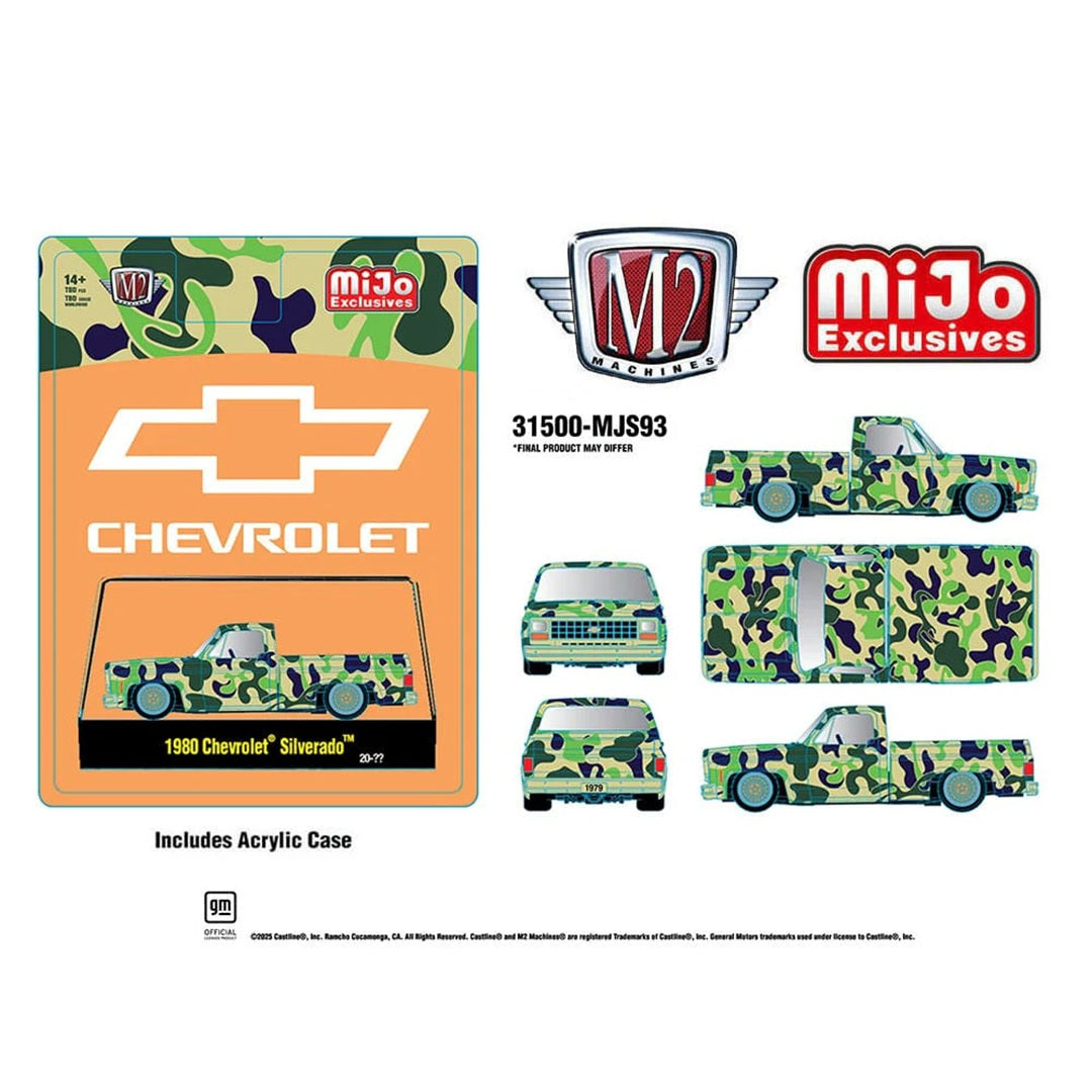 M2 Machines captures the iconic 1980 Chevrolet Silverado in meticulous 1:64 scale detail. This diecast model faithfully reproduces the classic truck's boxy proportions, chrome trim, and period-correct styling that defined the era. Ideal for collectors seeking authentic representation of American automotive heritage, the MJS93 variant delivers the precision engineering and paint quality M2 is known for. A standout addition to any diecast collection focused on vintage trucks and classic Chevrolet models.