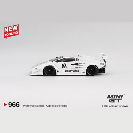 Experience the precision and craftsmanship of the Mini GT #966 Lamborghini Countach LB-WORKS in White, commemorating the 2024 Tokyo Auto Salon. This detailed diecast model captures the iconic wide-body design and aggressive stance of the LB-WORKS edition, showcasing authentic features true to the legendary Lamborghini Countach. Perfect for collectors and enthusiasts, it offers a high level of realism and quality, making it a standout piece in any automotive collection.