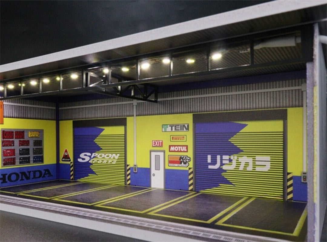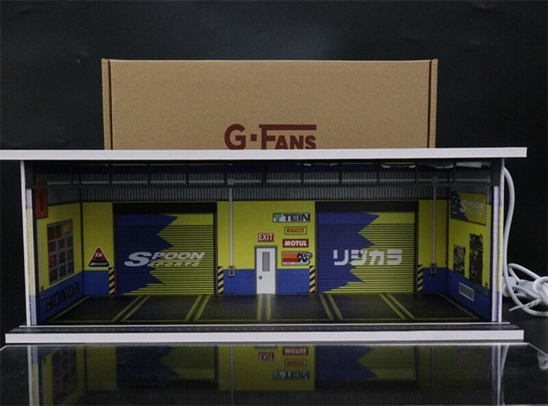 Display your 1:64 scale diecast collection with authentic detail in this G-Fan LED Diorama Spoon Garage. The meticulously crafted garage setting features realistic architectural elements and integrated LED lighting that highlights every nuance of your models. Perfect for enthusiasts who demand museum-quality presentation, this diorama captures the essence of a professional automotive workspace. Ideal for collectors seeking to elevate their display beyond standard shelving.