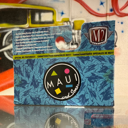 This M2 Machines CHASE release captures the 1957 Chevrolet 150 Handyman, the entry-level station wagon that has become a favorite among custom car builders and surf culture enthusiasts. Featuring M2's signature opening hood revealing a detailed period-correct engine, rubber tires on authentic wheels, and exclusive Maui & Sons graphics that celebrate the legendary surf brand's connection to California beach culture. The casting captures the 150's distinctive two-door wagon proportions, the iconic '57 Chevy front end styling, and the utilitarian character that made Handyman wagons perfect surf mobiles. Every detail from the stance to the Maui & Sons branding reflects M2's commitment to celebrating automotive subcultures and the lifestyle vehicles that defined them.