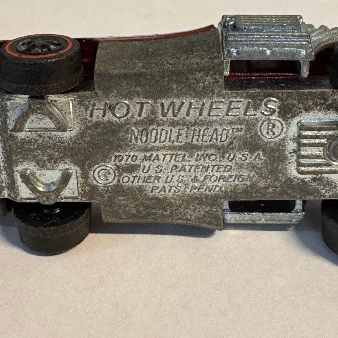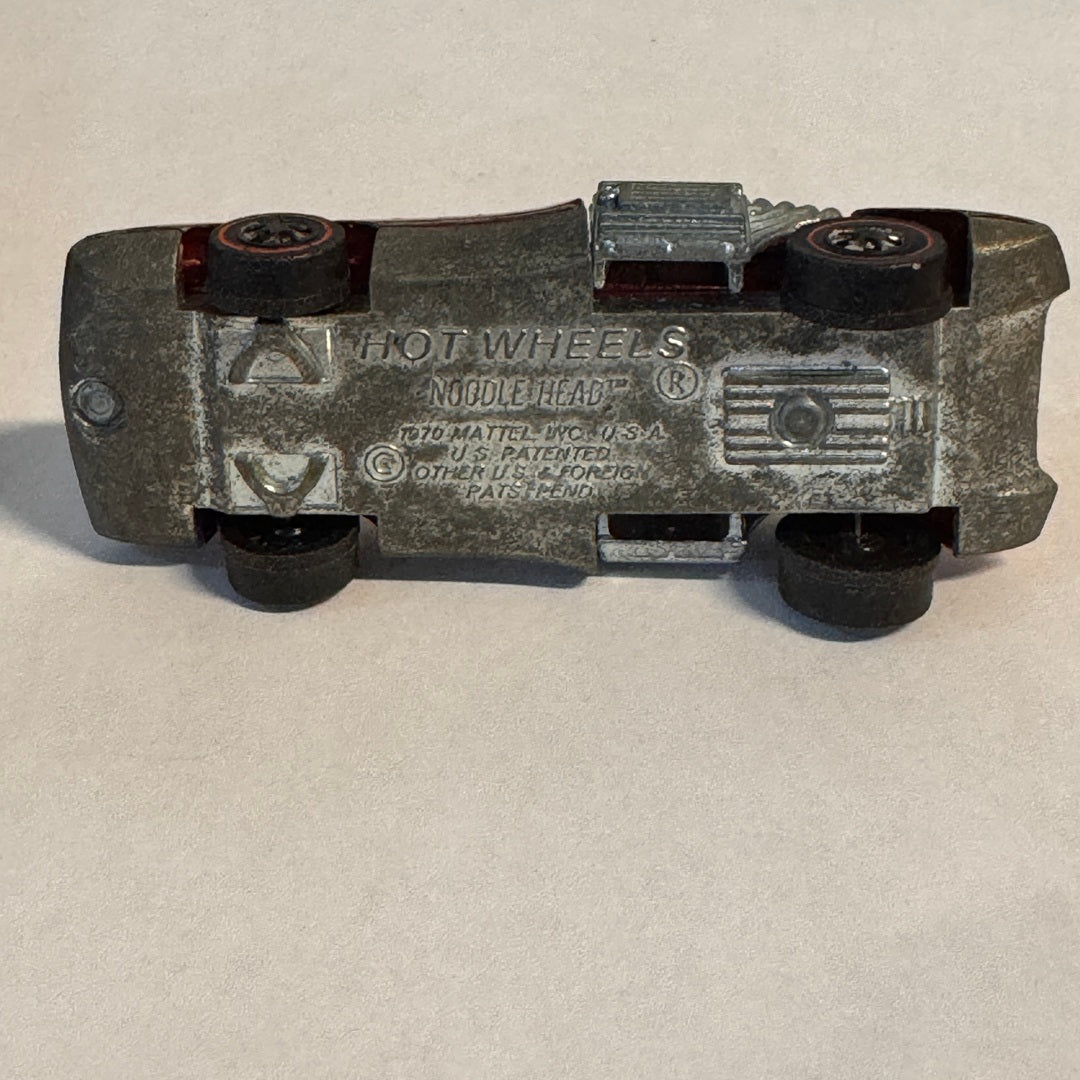 Introduced in 1971, the Noodlehead represents Hot Wheels at their most creative and unconventional. With its exaggerated proportions, stretched hood, and fantasy styling, this casting broke all the rules of traditional car design. The name "Noodlehead" perfectly captures its playful spirit, and the red Spectraflame finish makes this variant particularly eye-catching.