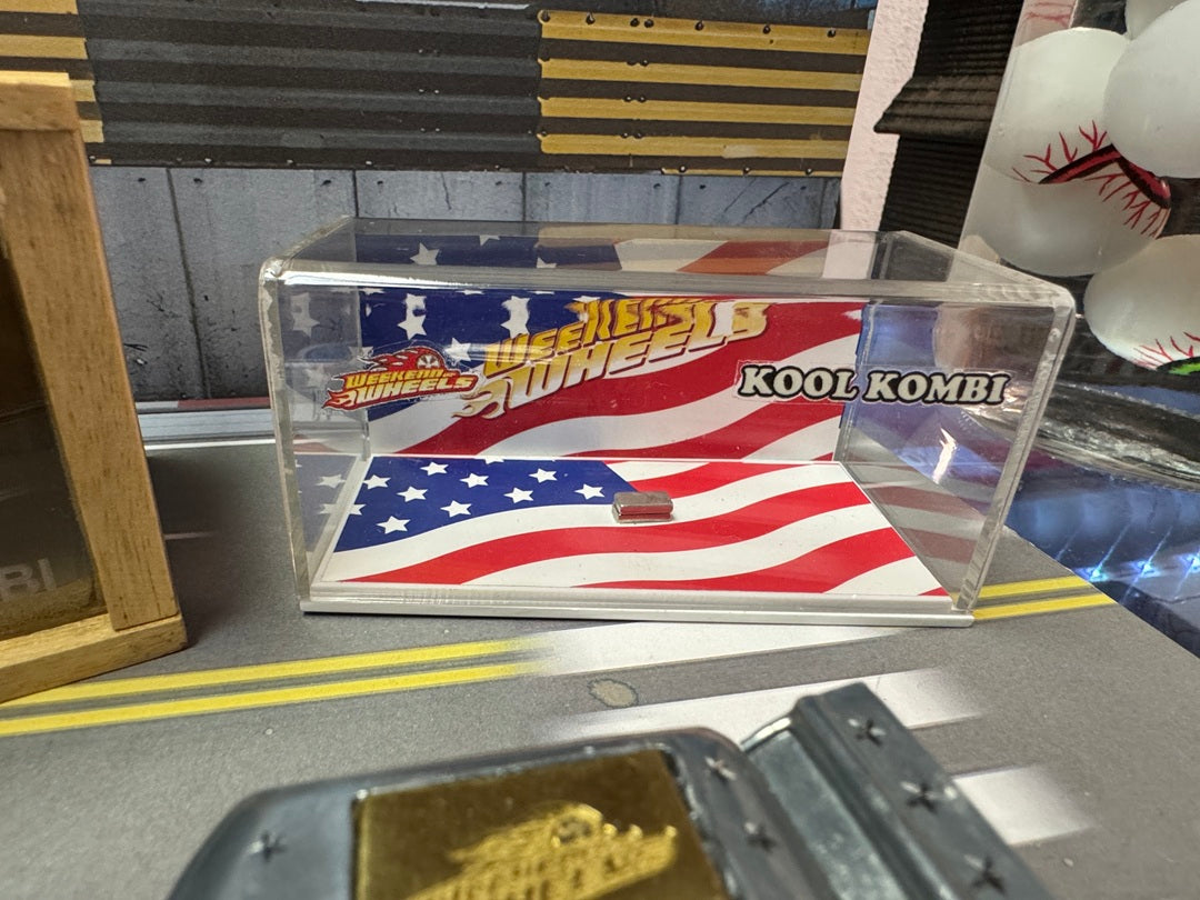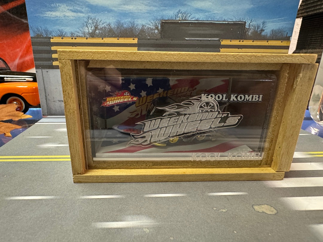 The Weekend of Wheels Kool Kombi model comes intricately engraved and presented in a custom wooden display box, making it a standout collectible for diecast enthusiasts. Crafted with precision, this piece combines nostalgic design with expert detailing, ensuring it is both a centerpiece and a lasting tribute to classic automotive culture. The wooden box provides elegant protection and presentation, perfect for showcasing or gifting.